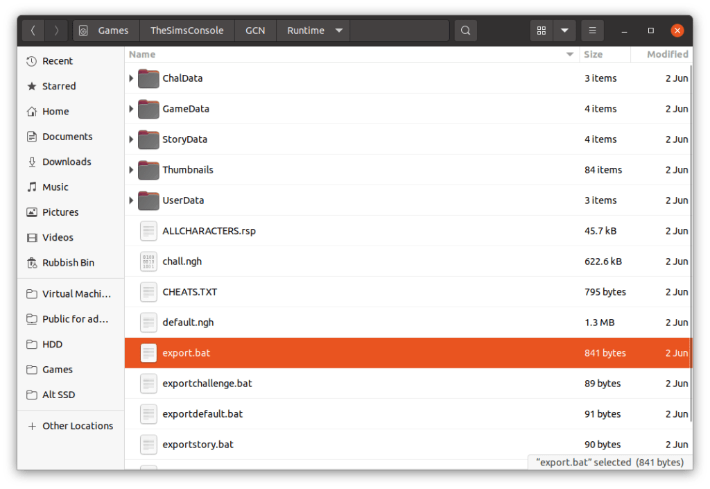 Looking on the Gamecube disc there is a Runtime folder that holds data for the default neighbourhoods, along with the sims, lots, and occupied objects (but not the objects themselves, or the skins, wall or floors). At first I assumed this was where the game pulls the default neighbourhood data from when creating an new memory card file, and would act as a template, however closely inspecting a batch files, it seems this folder is used to create the .ngh file which is kind of like a zip or cab archive of the above folders. The runtime folder is not present on the Xbox or Playstation 2 versions, but the ngh files are.