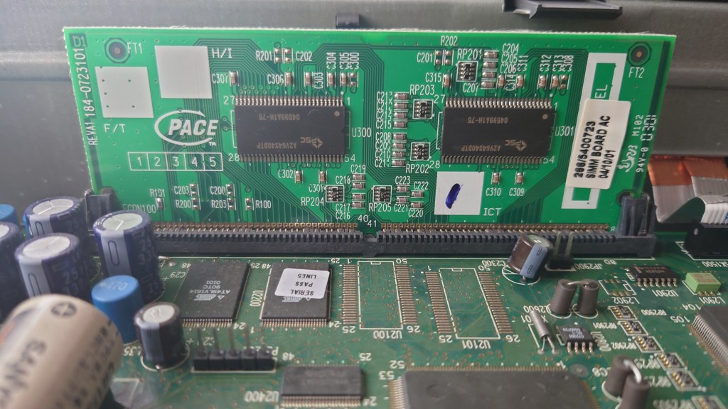 The system memory, unlike other STB’s of the era this one is designed to be upgradable but seems to be using a proprietary slot. Virgin Media could easily upgrade the memory of these units should the box be returned. This model currently has 16Mb.