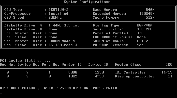 The first install went by without a hitch, but when it came to booting the OS it would immediately reboot and would continue to reboot by getting stuck in a boot loop. I fixed this by changing the CPU from a Cyrix to an AMD K6.