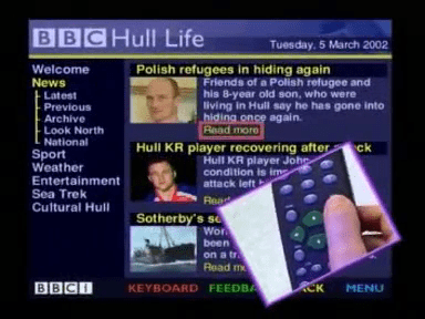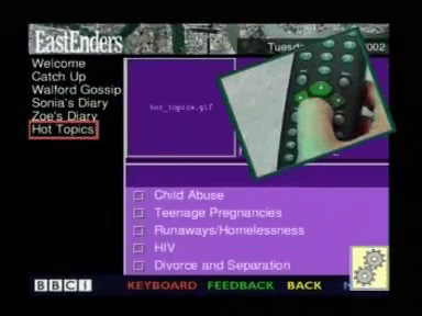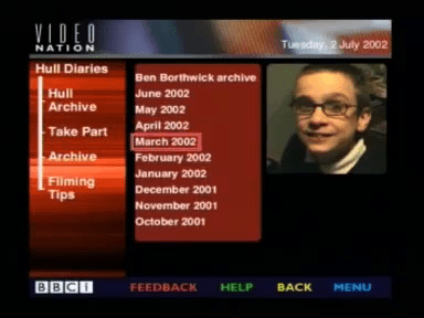 The main interactive portal, this was designed to be a competitor to the Sky active service offered by Sky, and the interactive services offered by cable, who’s interactive sites were written in HTML.