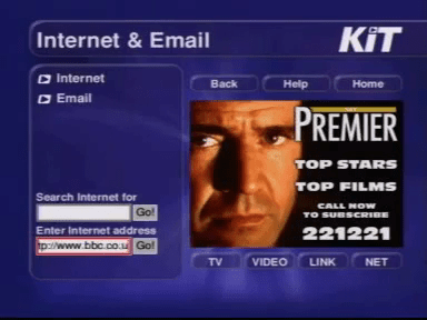 Like interactive cable, Kingston offered internet access and an email client built into the set top box.