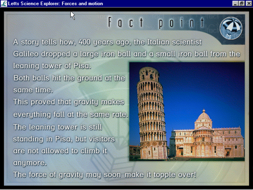 Science Explorer was a piece of software I remembered back in school which ran on RM Window Box PC’s (although it did not require it, able to run on 16 and 32 bit Windows systems). Designed as a learning tool for ages 7 to 11, it focused on a variety of different science subjects.