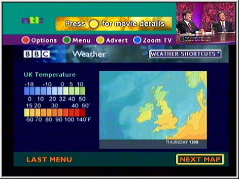 Interactive was handled by a separate component known as the Liberate TV Navigator, which is the middleware used for the interactive services. The version used is 1.1, this early implementation was separate from the main Tv Guide, which mean interactive icons like the red button were not possible, since the middleware only runs when the Interactive button is pressed, this changed in later implementations, where both the TV guide and interactive functions are using the Liberate engine.