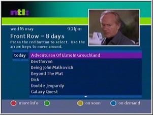 Navigation for the TV guide has been made easier, a list based view is used as opposed to the grid based guide that can be found on Sky and Virgin.