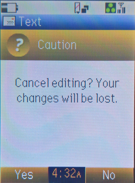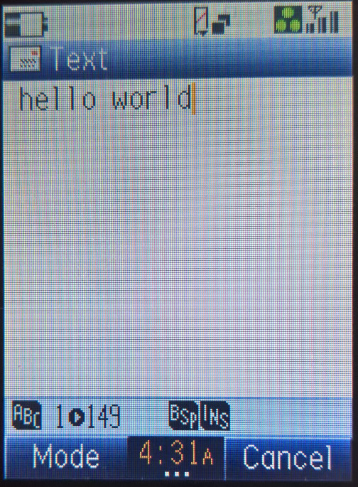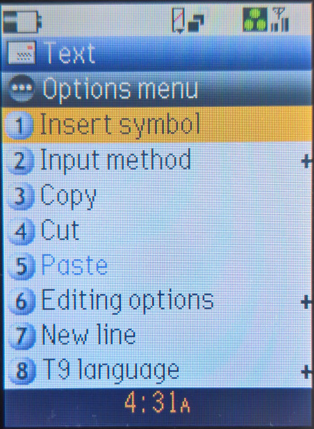 A full text editor is provided, with support for copy and paste and predictive text. An annoying feature is typing a message using the keypad, the phone makes DTMF sounds.