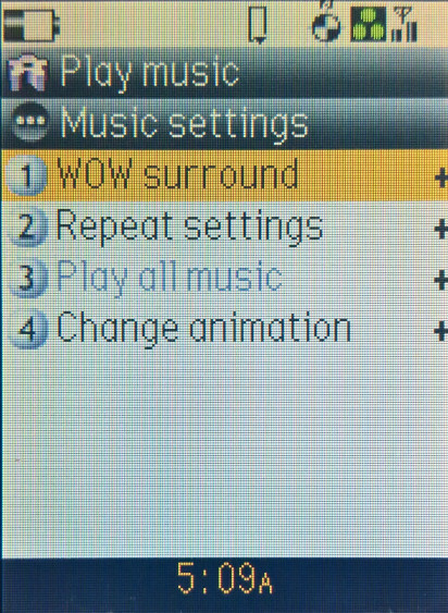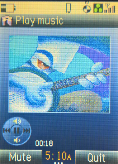 Capable of playing the Midi ringtones, but can also play back MP3 encoded files, either on the built in phone memory or from the memory card, just be mindful of the 5Mb transfer limit. Music can be played though the headphones or through the built in speaker.