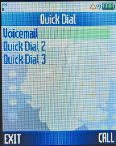 The four icons in a middle corresponds to the shortcuts than can be accessed using the phones directional pad buttons, and can be configured to the users preference. There is also a clock display at the bottom left, which can be set to either digital or analogue.