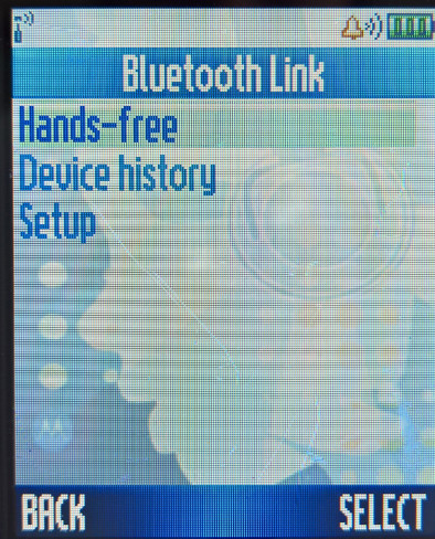 Bluetooth settings, you can set up a handfree device and change settings like the phones Bluetooth name, set the device to be discoverable. External Sync can also be set for an external server, which allows contacts to be synchronised.