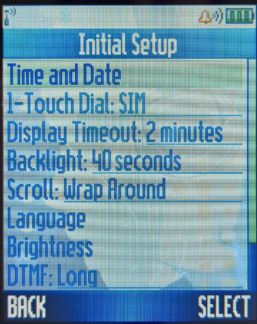 Basic settings can be changed here, date and time, one touch dial, display settings like the backlight duration and backlight timeout. The device can be set back to factory default settings from here using the security code (default: either 5 or six zeros, 00000)