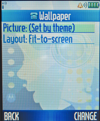 Wallpapers that can be set, either from the built in images or a photo taken by the phones camera. Like in Windows, if an images does not match the screen resolution, you can set the scaling method to either Centre, Tile or Fit-to-screen