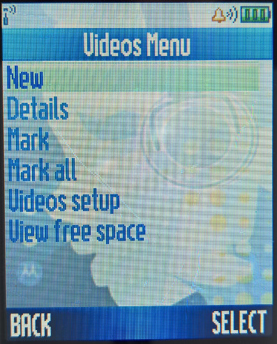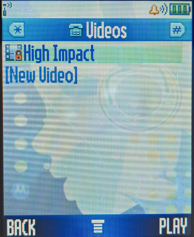 Video clips captured with the camera can be played back ere, the phone saved in the 3gp container format