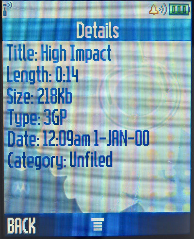Ringtones are saved here, MP3 files are also stored here and the handset is capable of playing full length MP3 songs, but with only 5Mb of memory, you are limited to only one song, if that.