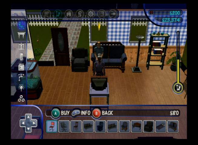 Sandbox-style gameplay like the original PC version of the Sims, although you have much less lots to play with, having only 6 lots from the 10 that PC version offered. You are also limited to 4 sims per lot with the PC version supporting 8, however the game internally supports 8 sims when using a modified save file.