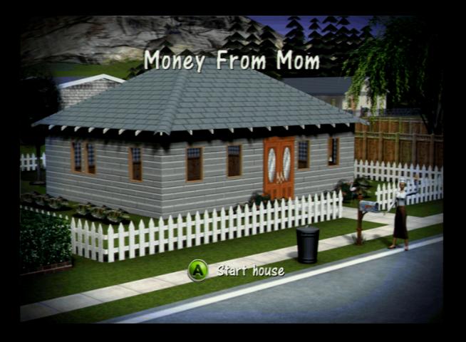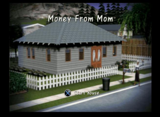 - Moms House – Starter level, objectives are to repair the TV, gain two cooking skill points to make a meal, and borrow 800 bucks from ‘Mom’ who is a pain in the arse and will randomly complain and refuses to clean and cook