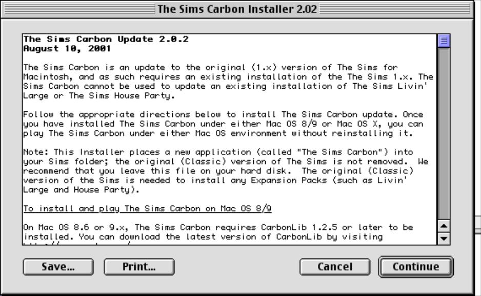 A Carbon version was later released for compatibility with Mac OS X, Carbon was an API that help facilitate the transition from the classic Mac OS to OS X. Carbon applications are only supported on OS 8.6 and higher. When you install the Carbon update, two executables are present in the games folder as some expansion packs rely on the older version. Starting from Hot Date, Carbon was installed as standard.
