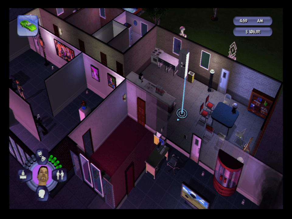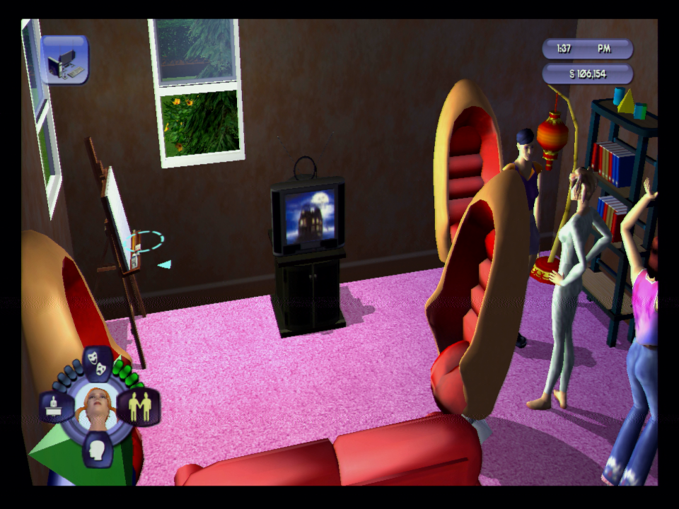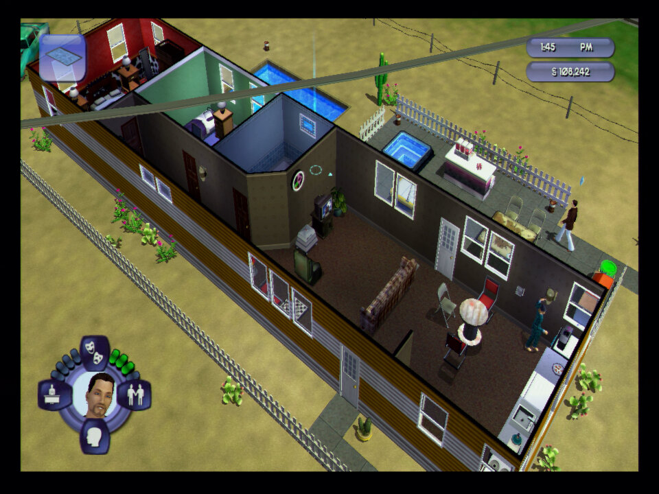 The first exclusive console release of The Sims, and sequel to the original console port. The Sims Bustin Out reuses a lot of assets from the original game with many objects returning along with their animations, however a revised user interface for both Live and the Build/Buy modes. Sims themselves have been redesigned along with new hairstyles, customizations and clothes styles.