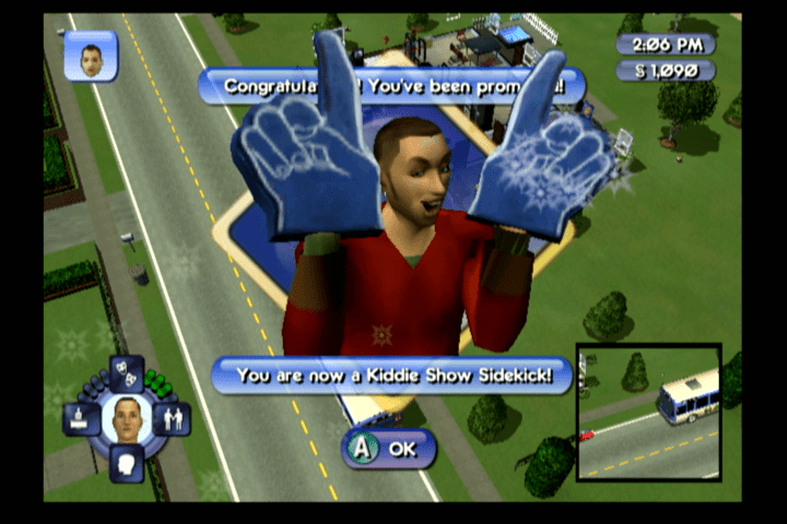 The main game mode that is similar to Get A life mode from the first release. You start off at Mom’s house and then progress onto different lots, gaining several job promotions along the way. As you gain promotions and unlock goals you will unlock new objects and social interactions, many of which were exclusive to The Sims Bustin out.