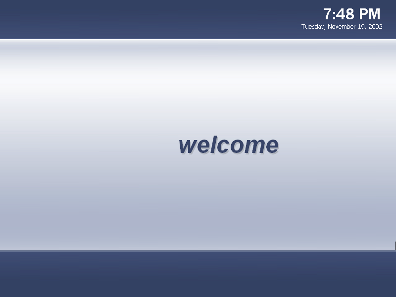Logon screen with a user account displayed, again very similar to XP but with a different colour scheme.