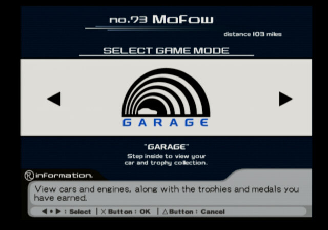 - Garage: View cars that you have unlocked by winning the GP races with that car, along with any unlocked engines.