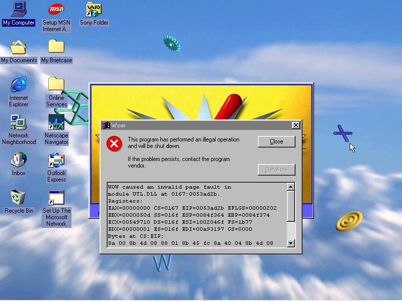Another casualty is the WOW application. Wipeout also no longer launches, I won’t count this since we are not using a RAGE 3D accelerator (No 86Box support for that yet)