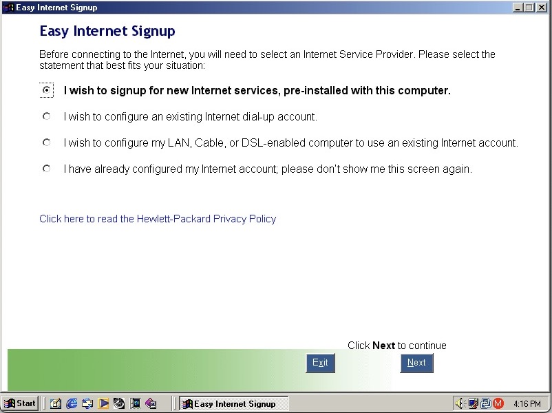 HP Internet setup utility that helps you connect to the internet, which would most likely be a dial up connection unless you were lucky enough to have a ADSL or Cable DOCSIS connection.