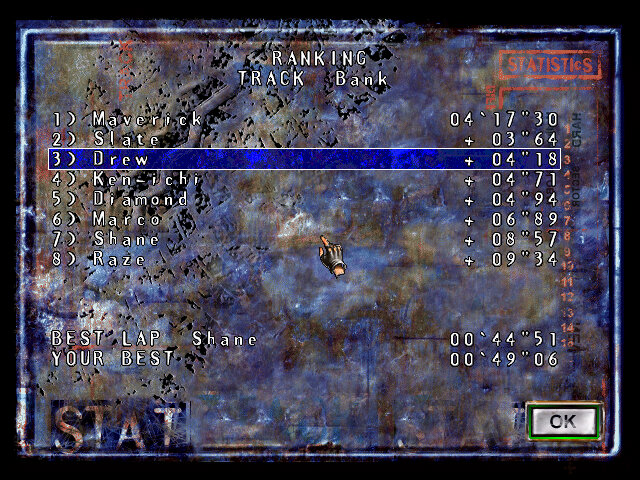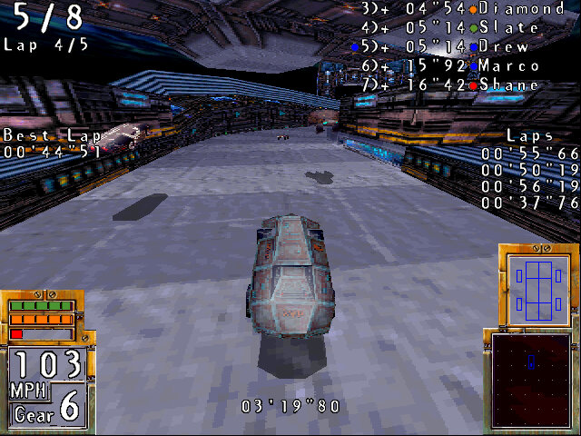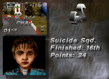 The game was also ported to the PlayStation, This release is a lot more polished, and features thumbnails of the rival characters after the race, showcasing their overall position. The framerate is also a lot more smoother compared to the PC but misses out on the potential of texture filtering unless an emulator is used. DuckStation is the emulator used here, with the stock graphic settings (no enhancements)