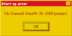 Trying to run the game without using a Diamond graphics card, using a generic S3 ViRGE card instead. A patch exists to remove this check.