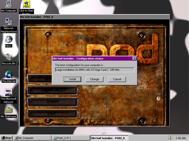 A custom desktop theme comes bundled with the game which gives a wallpaper, colour scheme and sound from the game onto your desktop. For Windows 95 you will need the Plus/1 pack as themes are not supported by default. For 98 and ME you can use the Desktop Themes applet that comes with those operating systems. To install you have to open the installer that’s at the root of the CD-ROM, and then run the WinZip self-extractor and extract to the Themes folder. You can also replace the bootup and shutdown screens that appear when Windows starts up.