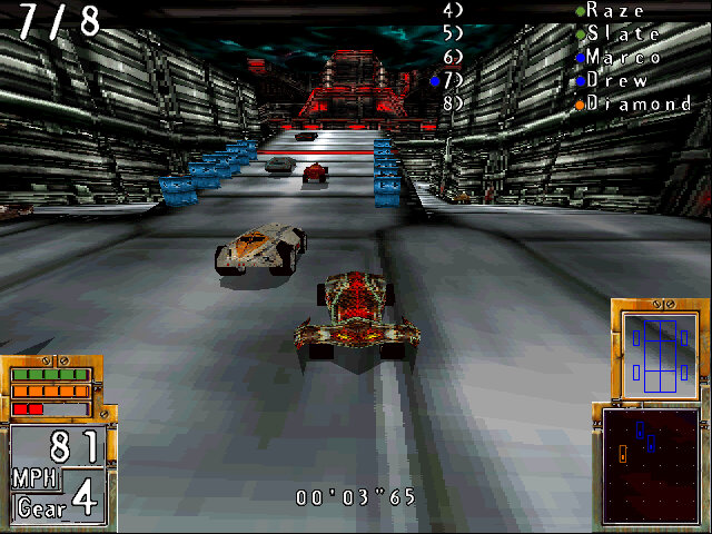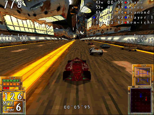 There was also a Saturn version, released in 1996 in Europe. Like other third-party ports it suffers from a poorer framerate compared to the PlayStation version. Still the game is playable and defiantly worth checking out if you’re interested in Saturn racing games. The Mednafen emulator is used for the screenshots below.