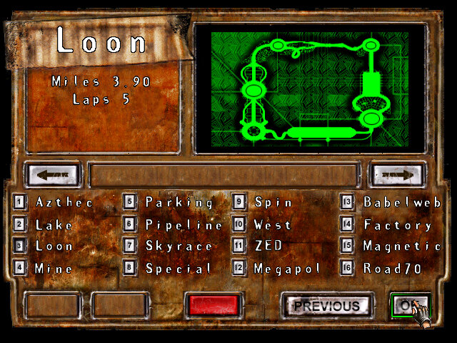 There are a few FMV’s in the game that make use of Intel’s Indeo technology which is installed by default. Content-wise there’s a lot of tracks included, with the ability to download and install further more tracks. Many of the tracks follow their own unique style and are varied in their environment. Some of the tracks feature multiple routes which offer shortcuts where others can increase the difficulty of the race. Making a wrong turn can cause you to lose the race, which requires you to memorise the tracks and their routes.