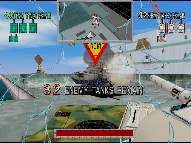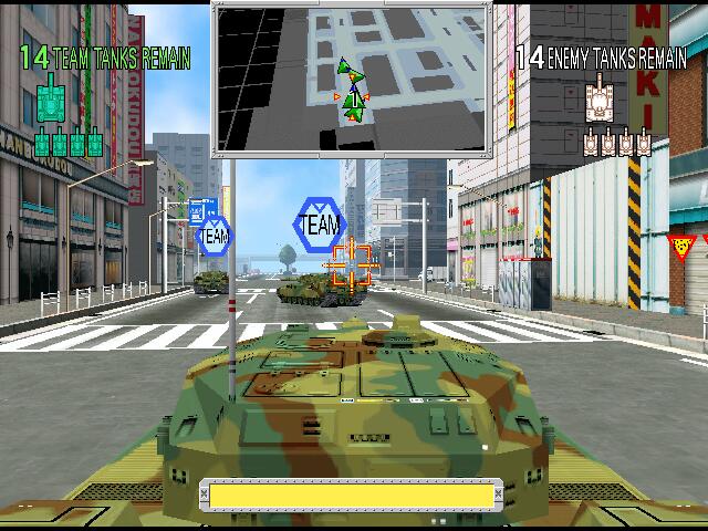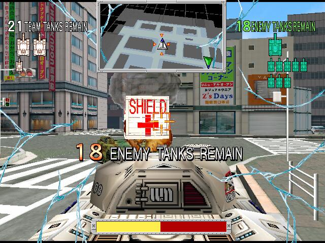 You join either the Green Force or White Force and battle opposing tanks in large 3D arenas. Matches last up to 15 minutes or until one team is wiped out – depending on the arcade operator settings. Destroying enemy tanks will give you a small shield boost that you have to pick up, which gives you more health.