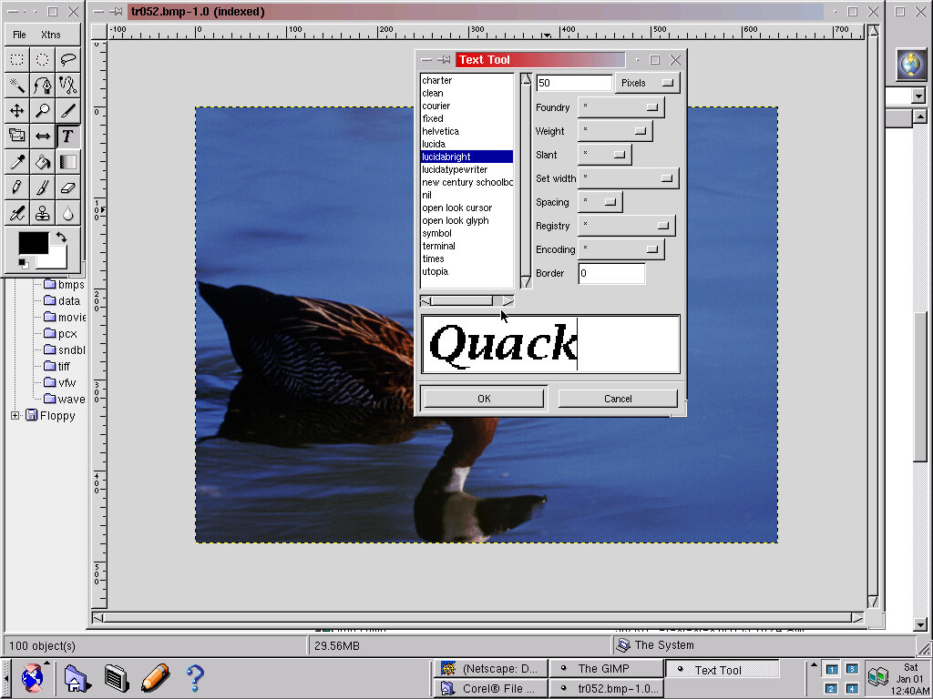 the GIMP (1.0.2) Image and photo editing application