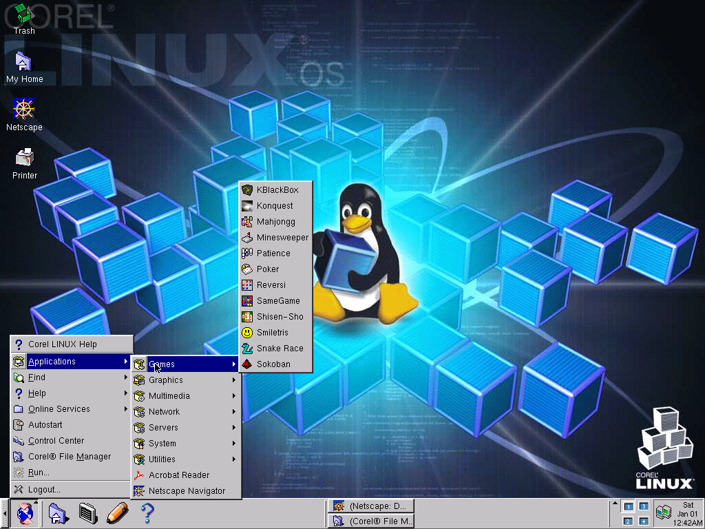 An early Linux distro, this time by Corel who also developed Corel Draw and is known for PaintShop Pro and WordPerfect office suite