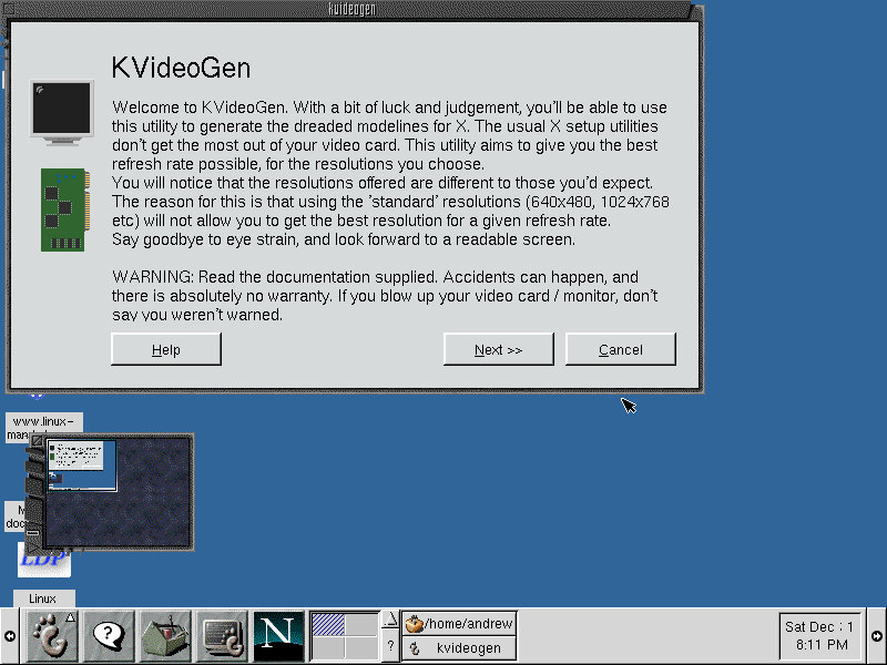 We are introduced to the desktop, and to the KDE user environment. Very similar to other distros of the time like Storm Linux, Mandrake 7 and Corel Linux. This presents a familiar Windows like interface to the user. Upon first boot we are greeted with a literal wizard, who will introduce you to the operating system elements. On the desktop we have shortcut to Caldera’s website, along with removable drive shortcuts. No other desktop environments are included, like GNOME.