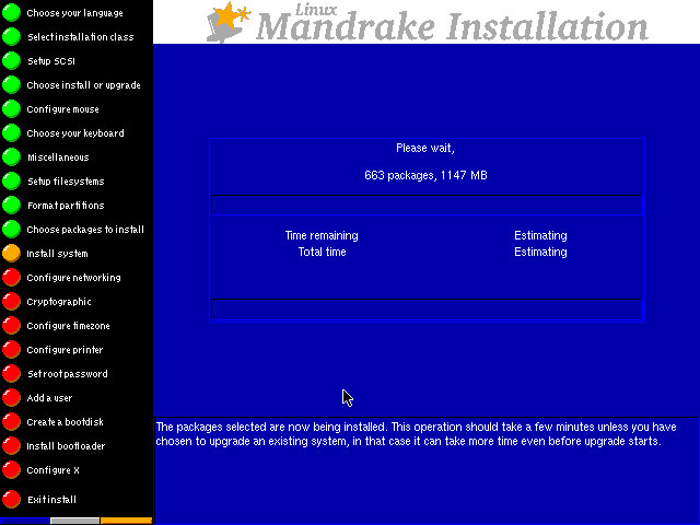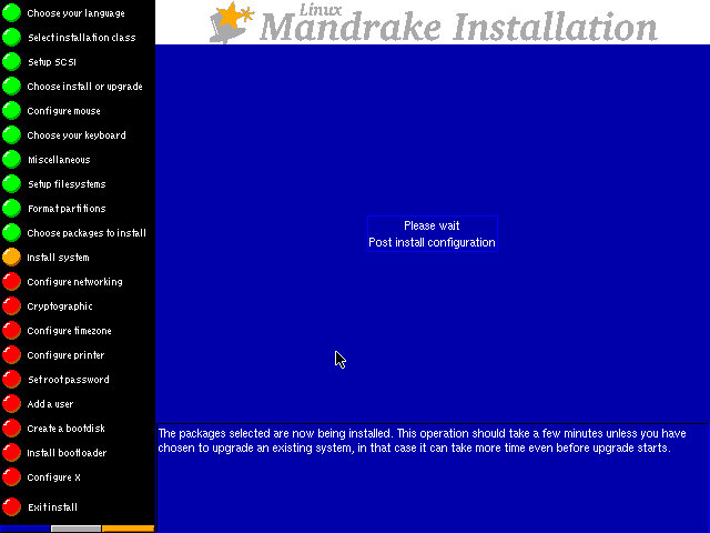 Another thing I noticed is that Mandrake will check drives for errors every once in a while, this happened because I left the date set at the motherboard default (1994), when I changed it to 2000 and booted it up it performed a check on all drives partitions.