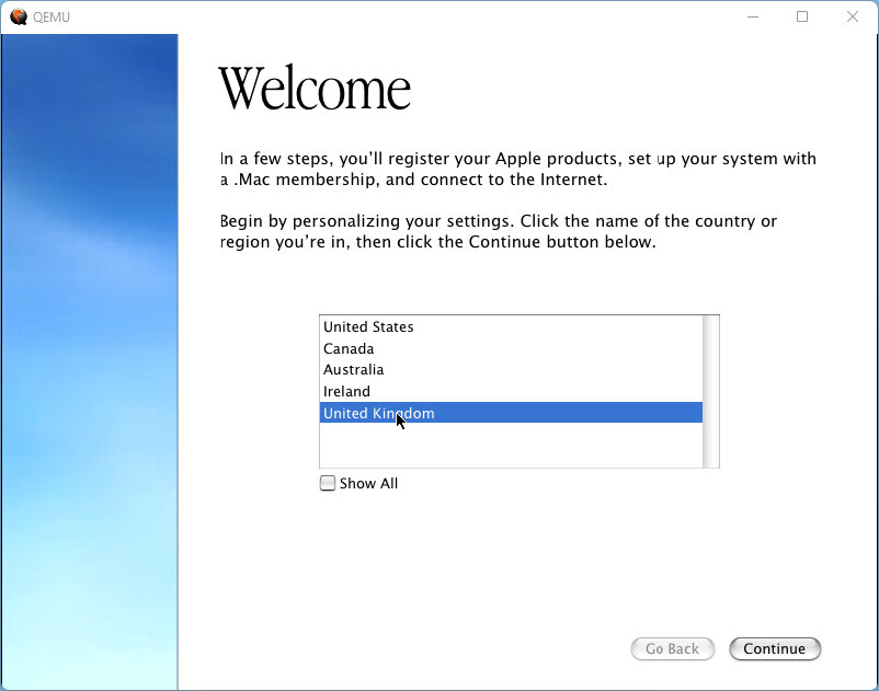 The third release of Mac OS X, let’s hope the bugs from the last version were fixed in this build. Some screenshots come from QEMU (4:3) and off a real PowerMac G4 (16:10)