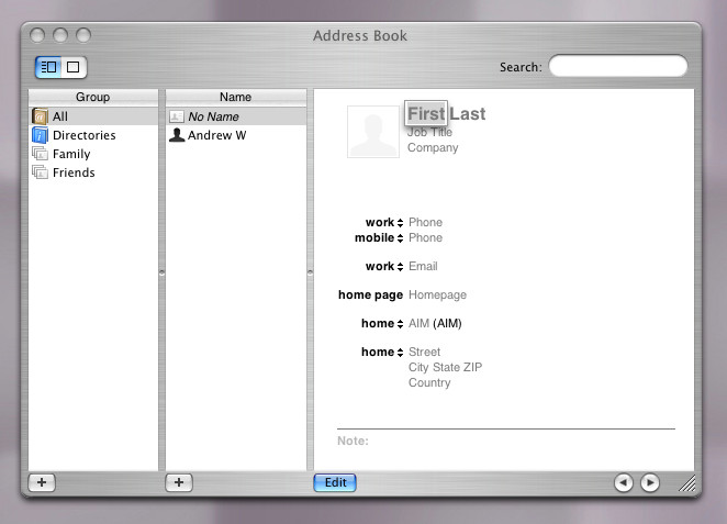 Address Book: Appears to have a brush aluminum appearance which would later influence the Finer window interface for Panther and Tiger