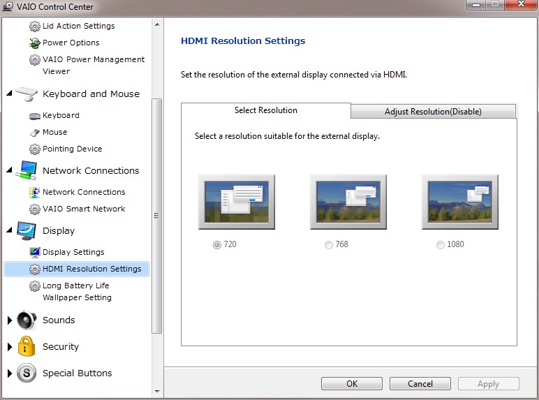 VAIO Control Center