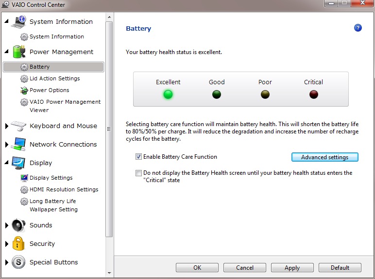 It will also display the heath of your battery (this one happens to be a GreenCell battery I got off Amazon, which shows as healthy yet struggled to hold a charge when disconnected from the AC adaptor.