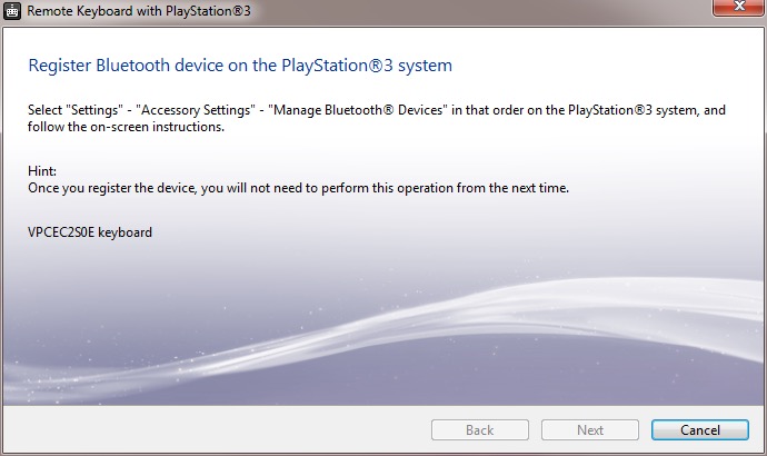 The other utility is the remote keyboard, which lets you pair the PS3 via Bluetooth to allow your VAIO’s keyboard and trackpad to functional it it were connected to the PS3. The setup will guide you on how to pair both devices and once enabled, you can fully control the XMB. This does prevent you from using the laptop whilst connected to the PS3, requiring you to disconnect it from the PS3 XMB, or by pressing Ctrl + Alt+ Backspace on the keyboard.