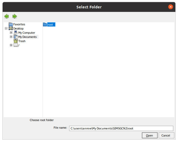 Select Root, then Open, and then navigate to the folder that has the extracted sims files and select the root folder.