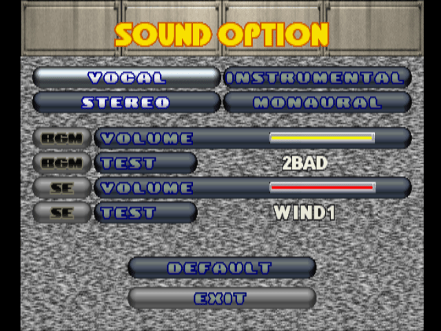 You can choose from the default soundtrack which features vocals, or just the instrumental versions. You can also hear the various samples and sound-effects.