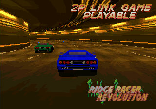 Revolution included a new two-player link that allows for two players to race each other through the use of two consoles, two copies of the game and two displays. This is not the same as the split-screen modes in the later installments of Ridge Racers, with only one player per console. A link cable is required to connect both consoles together using the serial port located on the original PlayStation models. The smaller Psone branded consoles lack this port and cannot make use of the two-player modes, but can still play the single-player modes.