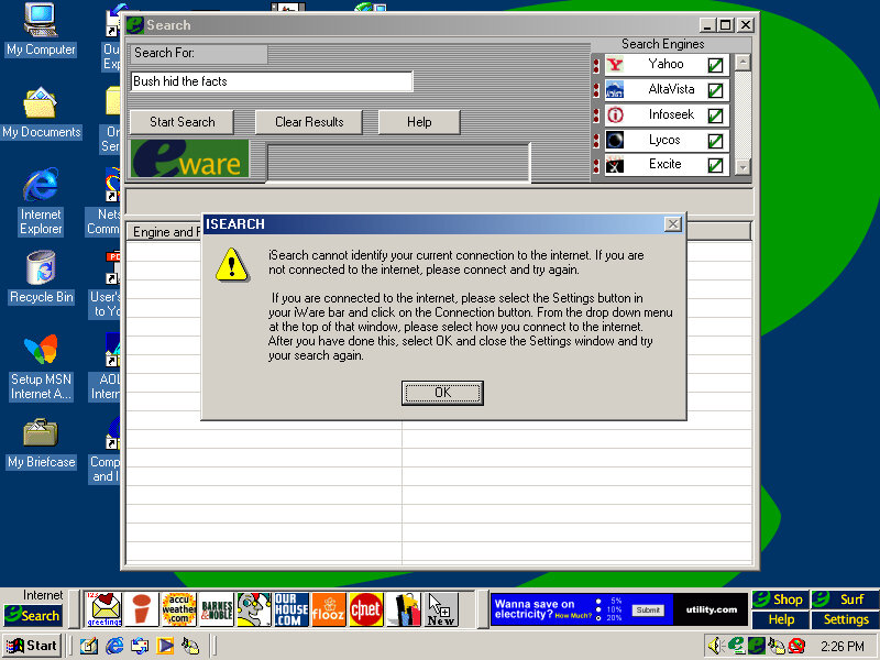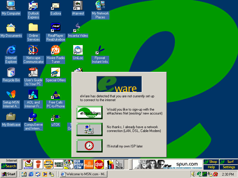If you’re wondering what the Click Me! link in the start menu does, it displays this message and then disappears, along with the shortcut itself. Probably self terminates if it detects it’s not on a legit Fujitsu machine