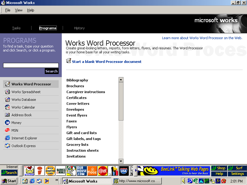 Microsoft Works comes included here which serves as a basic productivity suite. Im surprised this here as this class of laptops would have been used in an office environment where Microsoft Office would have been used instead.