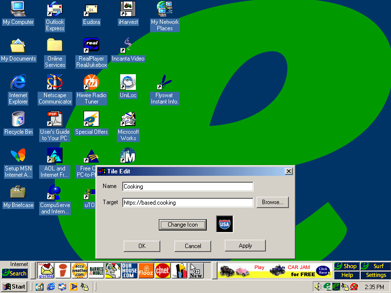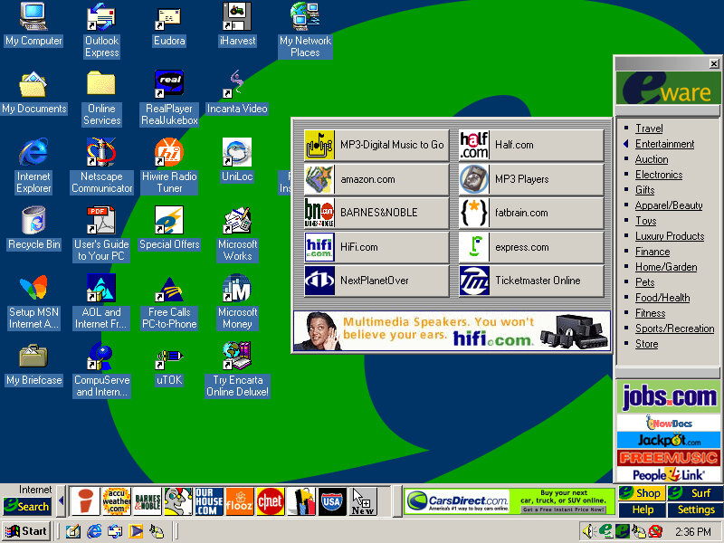 And the desktop, with a custom Fujitsu wallpaper. A few others come included that have the Fujitsu infinite logo, which reminds me of that hidden Sonic CD screen (fun is infinite)