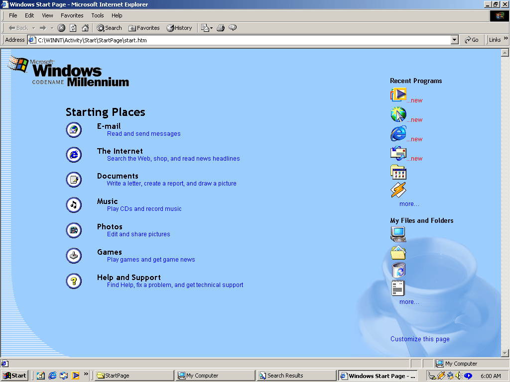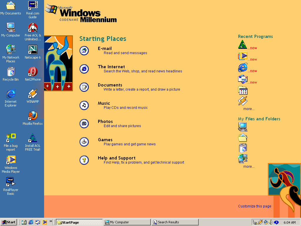 The My Hardware section, a more user friendly version of the Device Manager. This would later evolve into the Devices & Printers in later Windows versions.