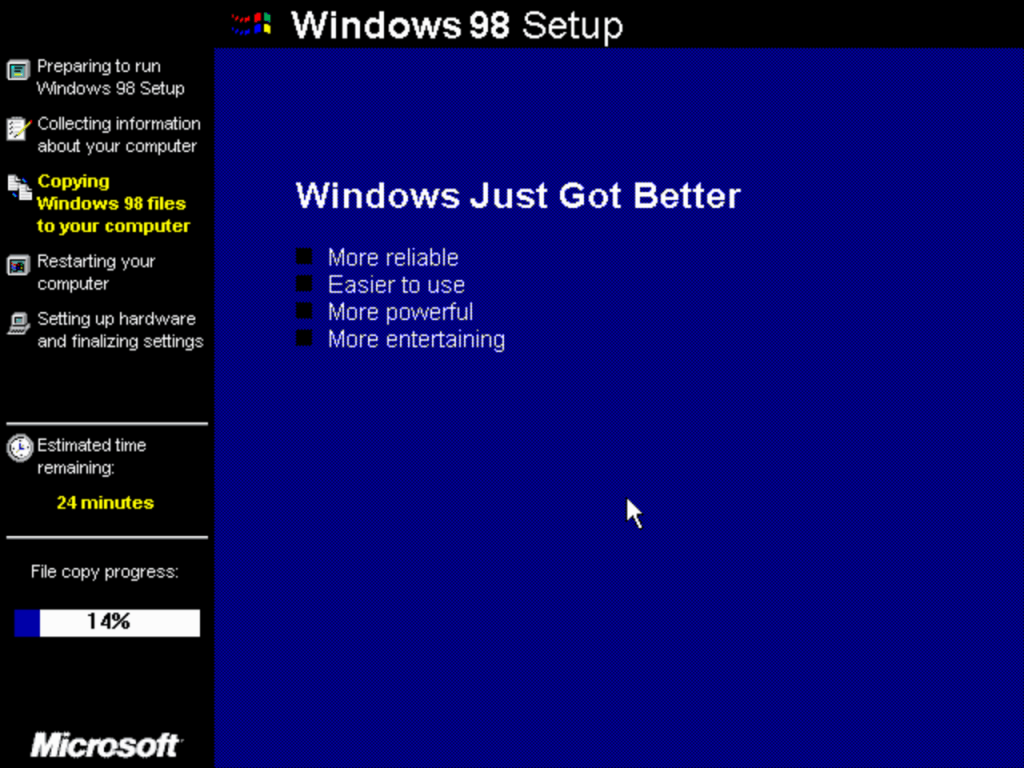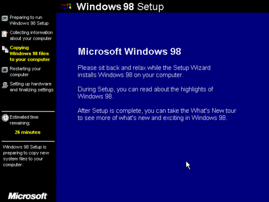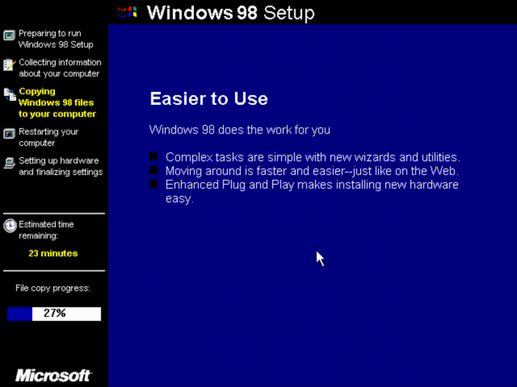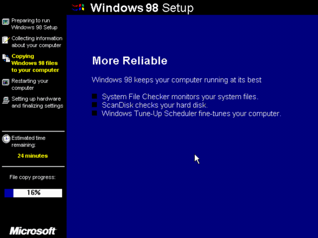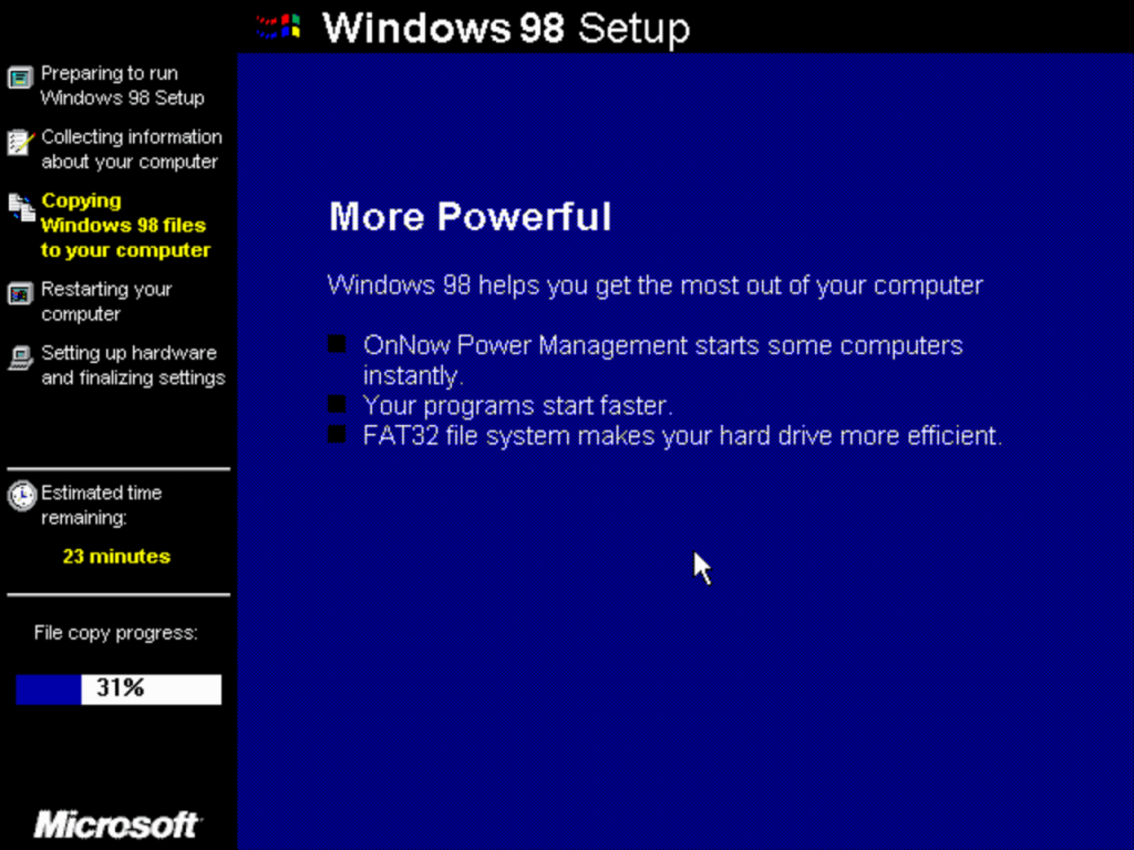 The second stage install process which looks the same as Windows XP