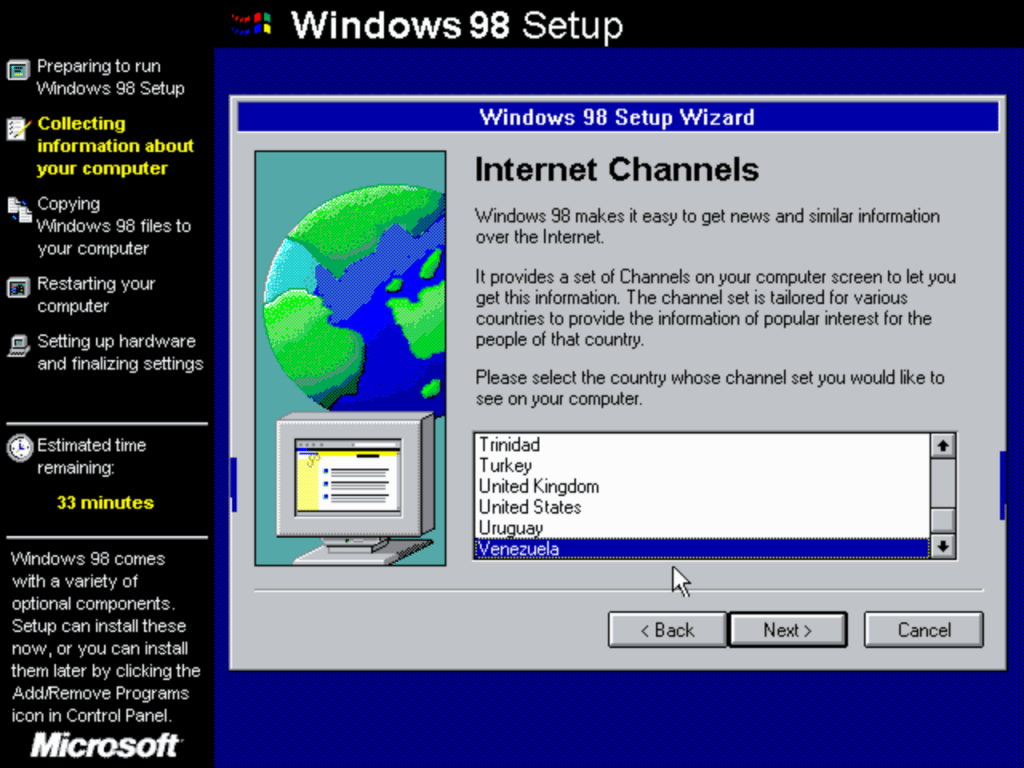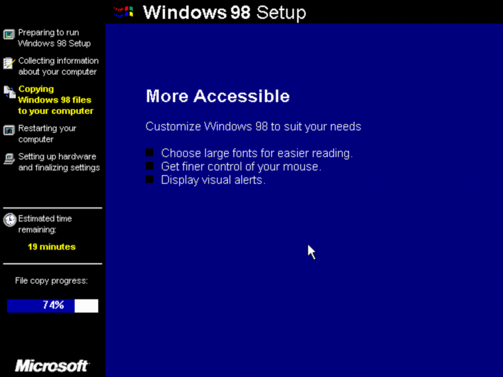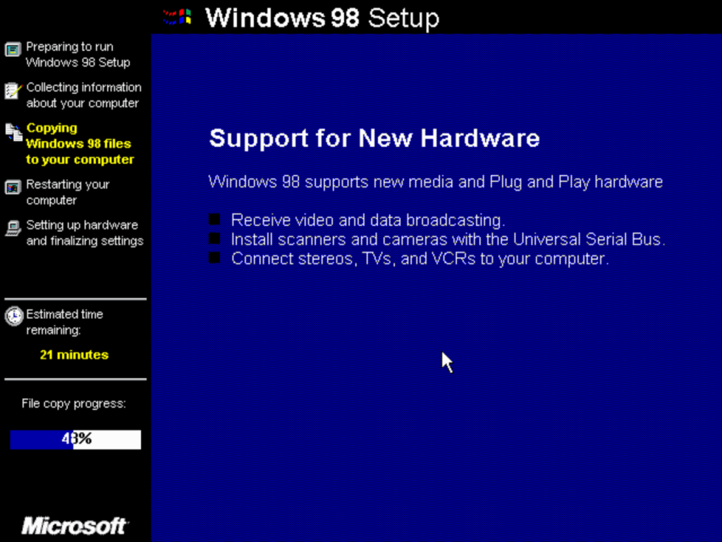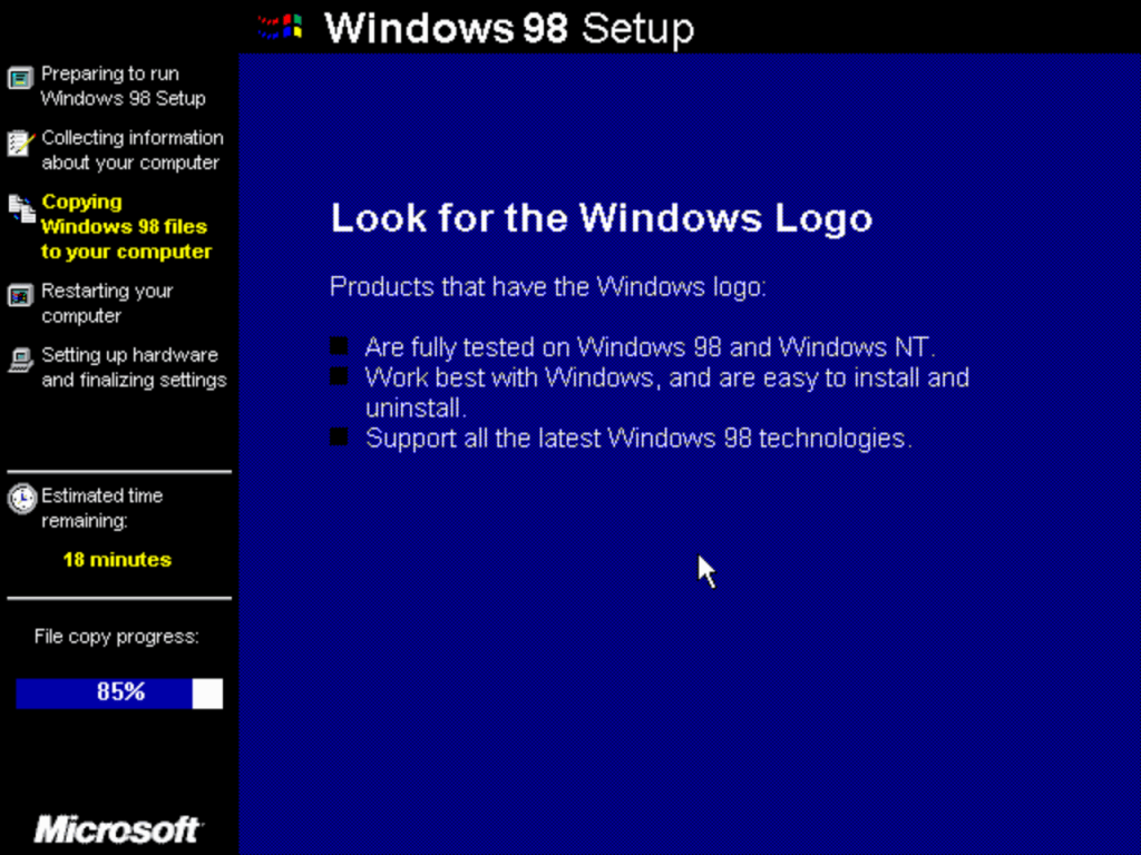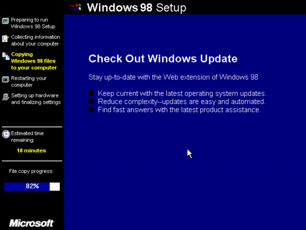 The second stage install process which looks the same as Windows XP