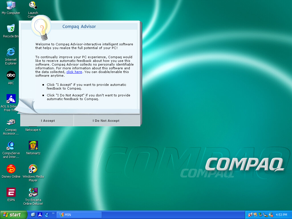 Compaq Carbon Copy – A remote support software. In the event you experience technical problems, you can contact Compaq who would then be able to connect to your PC and provide remote support. Looking in the software you can also use this over a LAN with other computers that have this software installed. You can also use this to transfer files and voice chat to the other user, kind of amazing pulling that off on a dial up connection.